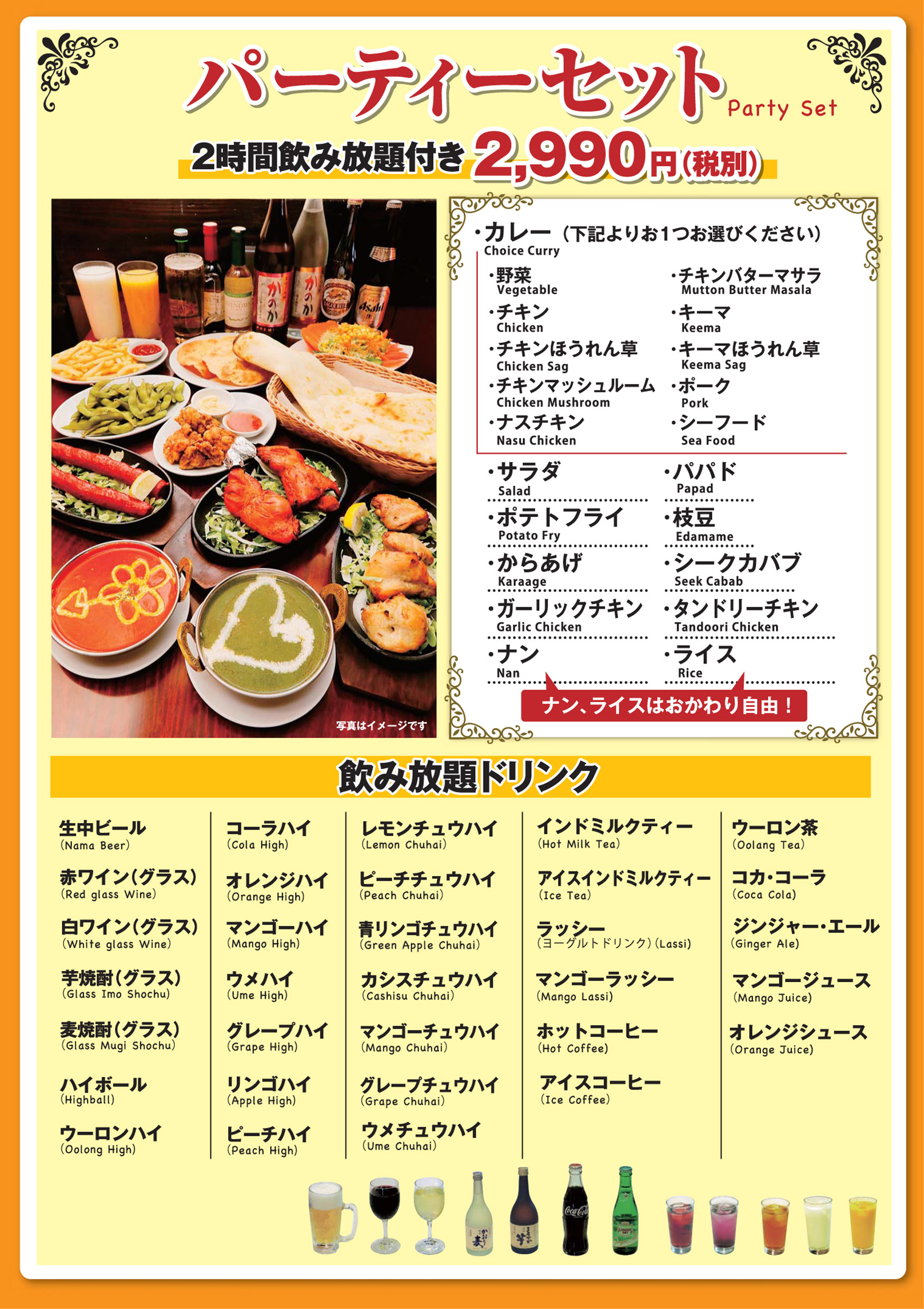 2時間飲み放題付き 2990円+税